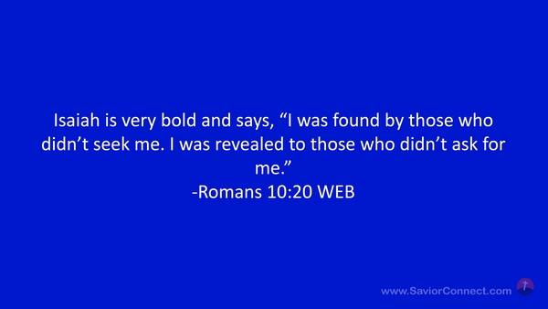 Isaiah is very bold and says, “I was found by those who didn’t seek me. I was revealed to those who didn’t ask for me.” -Romans 10:20 WEB