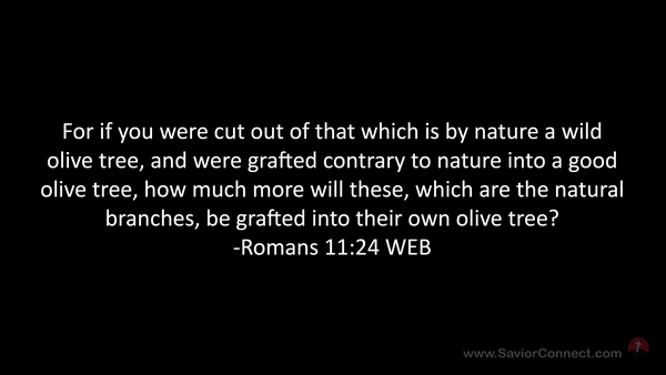 For if you were cut out of that which is by nature a wild olive tree, and were grafted contrary to nature into a good olive tree, how much more will these, which are the natural branches, be grafted into their own olive tree? -Romans 11:24 WEB