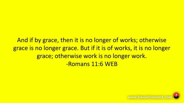 And if by grace, then it is no longer of works; otherwise grace is no longer grace. But if it is of works, it is no longer grace; otherwise work is no longer work. -Romans 11:6 WEB