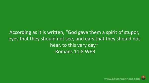 According as it is written, “God gave them a spirit of stupor, eyes that they should not see, and ears that they should not hear, to this very day.” -Romans 11:8 WEB