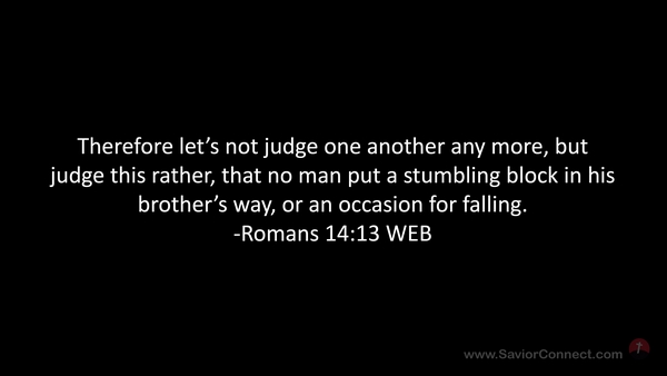 Therefore let’s not judge one another any more, but judge this rather, that no man put a stumbling block in his brother’s way, or an occasion for falling. -Romans 14:13 WEB