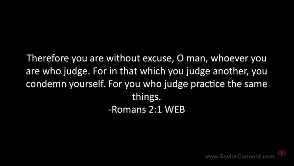 Therefore you are without excuse, O man, whoever you are who judge. For in that which you judge another, you condemn yourself. For you who judge practice the same things. -Romans 2:1 WEB