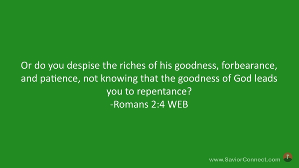 Or do you despise the riches of his goodness, forbearance, and patience, not knowing that the goodness of God leads you to repentance? -Romans 2:4 WEB