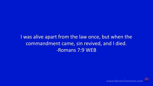 I was alive apart from the law once, but when the commandment came, sin revived, and I died. -Romans 7:9 WEB