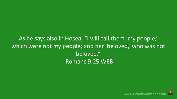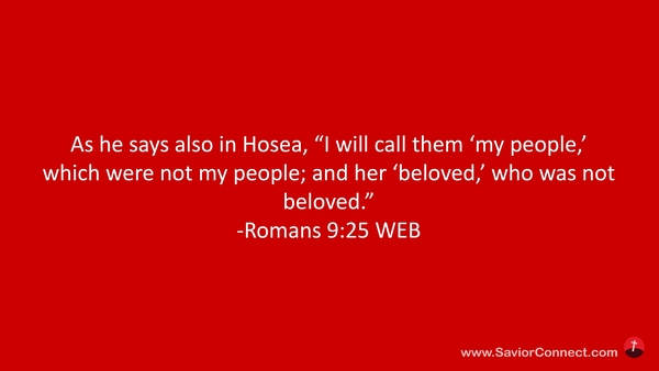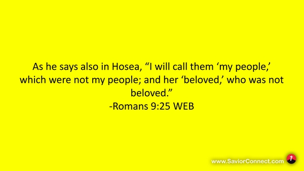 As he says also in Hosea, “I will call them 'my people,’ which were not my people; and her 'beloved,’ who was not beloved.” -Romans 9:25 WEB