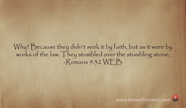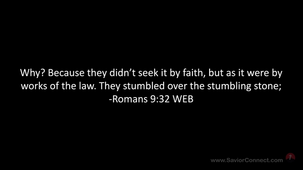 Why? Because they didn’t seek it by faith, but as it were by works of the law. They stumbled over the stumbling stone; -Romans 9:32 WEB