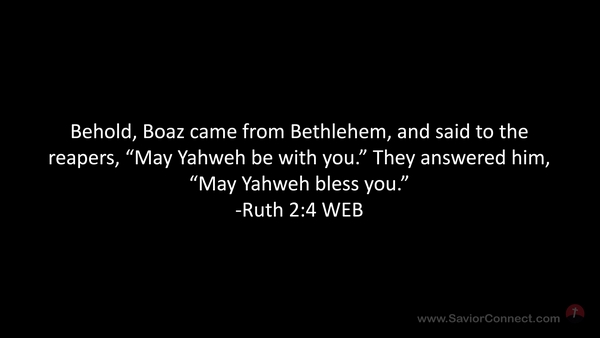 Behold, Boaz came from Bethlehem, and said to the reapers, “May Yahweh be with you.” They answered him, “May Yahweh bless you.” -Ruth 2:4 WEB