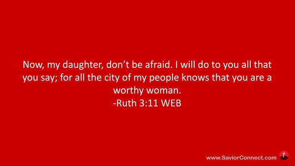 Now, my daughter, don’t be afraid. I will do to you all that you say; for all the city of my people knows that you are a worthy woman. -Ruth 3:11 WEB