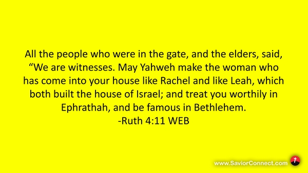 All the people who were in the gate, and the elders, said, “We are witnesses. May Yahweh make the woman who has come into your house like Rachel and like Leah, which both built the house of Israel; and treat you worthily in Ephrathah, and be famous in Bethlehem. -Ruth 4:11 WEB