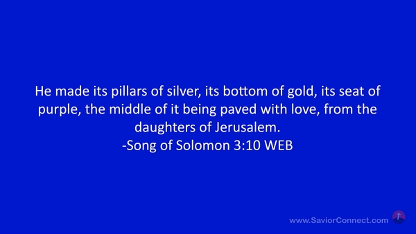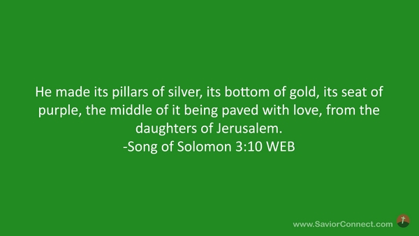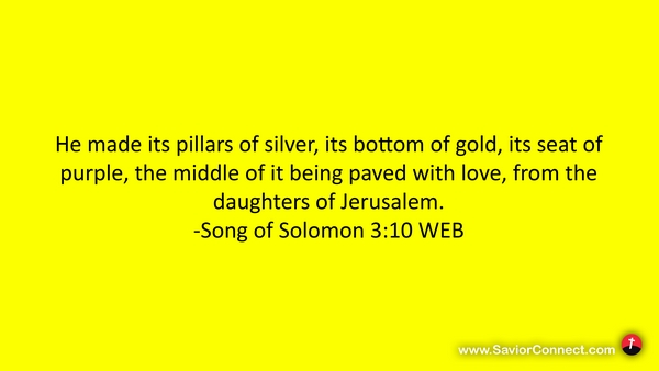 He made its pillars of silver, its bottom of gold, its seat of purple, the middle of it being paved with love, from the daughters of Jerusalem. -Song of Solomon 3:10 WEB