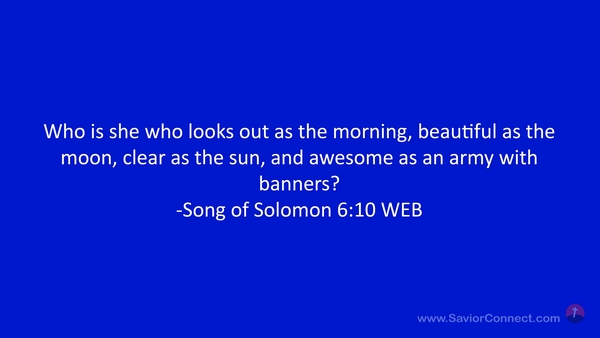 Who is she who looks out as the morning, beautiful as the moon, clear as the sun, and awesome as an army with banners? -Song of Solomon 6:10 WEB