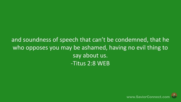 and soundness of speech that can’t be condemned, that he who opposes you may be ashamed, having no evil thing to say about us. -Titus 2:8 WEB