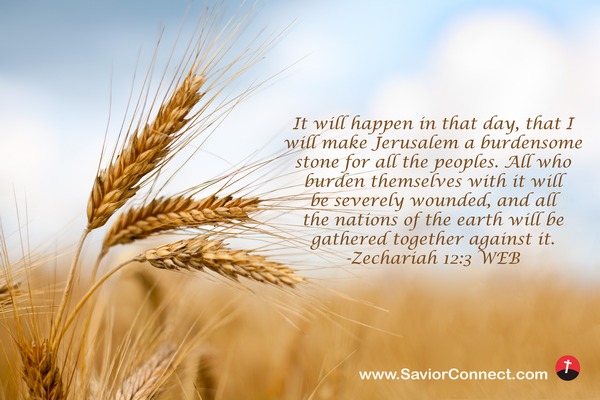 It will happen in that day, that I will make Jerusalem a burdensome stone for all the peoples. All who burden themselves with it will be severely wounded, and all the nations of the earth will be gathered together against it. -Zechariah 12:3 WEB