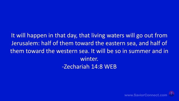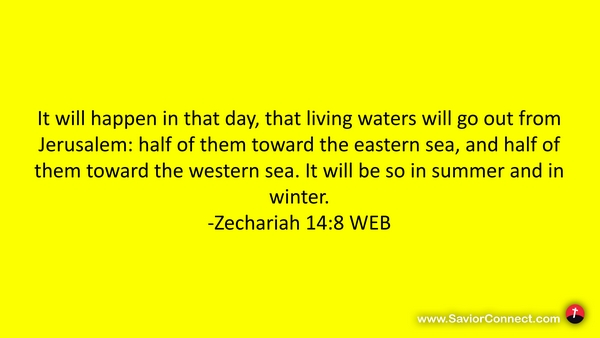 It will happen in that day, that living waters will go out from Jerusalem: half of them toward the eastern sea, and half of them toward the western sea. It will be so in summer and in winter. -Zechariah 14:8 WEB