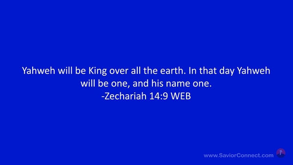 Yahweh will be King over all the earth. In that day Yahweh will be one, and his name one. -Zechariah 14:9 WEB
