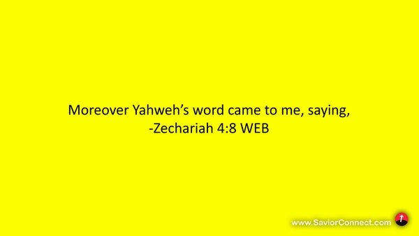 Moreover Yahweh’s word came to me, saying, -Zechariah 4:8 WEB