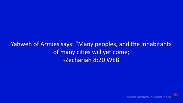 Yahweh of Armies says: “Many peoples, and the inhabitants of many cities will yet come; -Zechariah 8:20 WEB