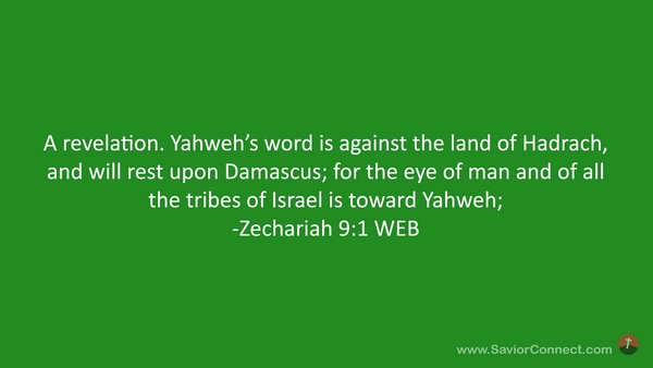 A revelation. Yahweh’s word is against the land of Hadrach, and will rest upon Damascus; for the eye of man and of all the tribes of Israel is toward Yahweh; -Zechariah 9:1 WEB