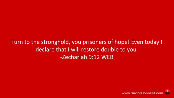 Turn to the stronghold, you prisoners of hope! Even today I declare that I will restore double to you. -Zechariah 9:12 WEB